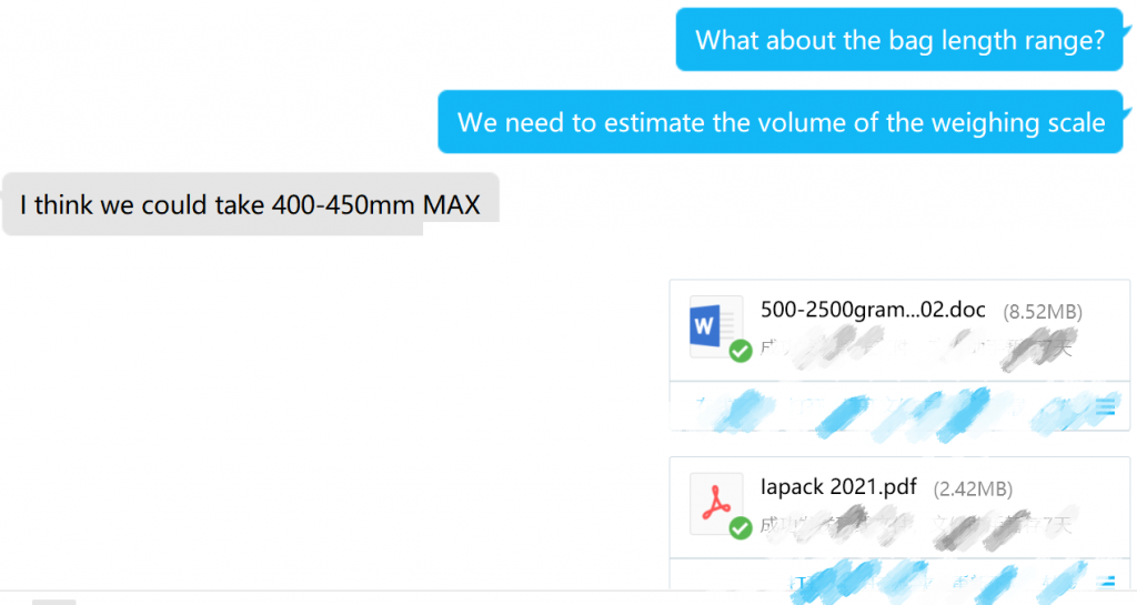 Dopo aver confermato le dimensioni del sacco e il peso specifico del materiale, fornire al cliente un preventivo: