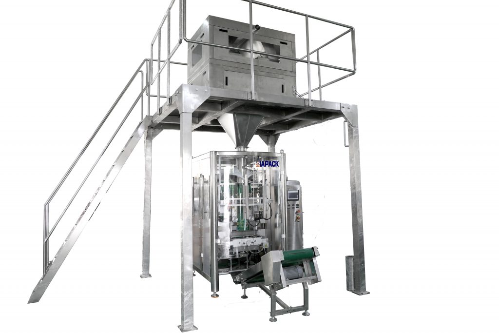 Questa unità di macchina include un set ZL720 verticale per la formazione di sacchetti di riempimento sigillatrice e un set ZLS-6 Pesa a sei secchi, un set DT3 elevatore verticale e una macchina convogliatore di uscita. L'intera unità della macchina può raggiungere la produzione automatica di sacchetti, la pesatura del prodotto, il riempimento del prodotto sigillatura e codifica della data. Ampiamente utilizzato per l'imballaggio di stecche, detersivo in polvere, riso, fagioli e altri prodotti granulari.