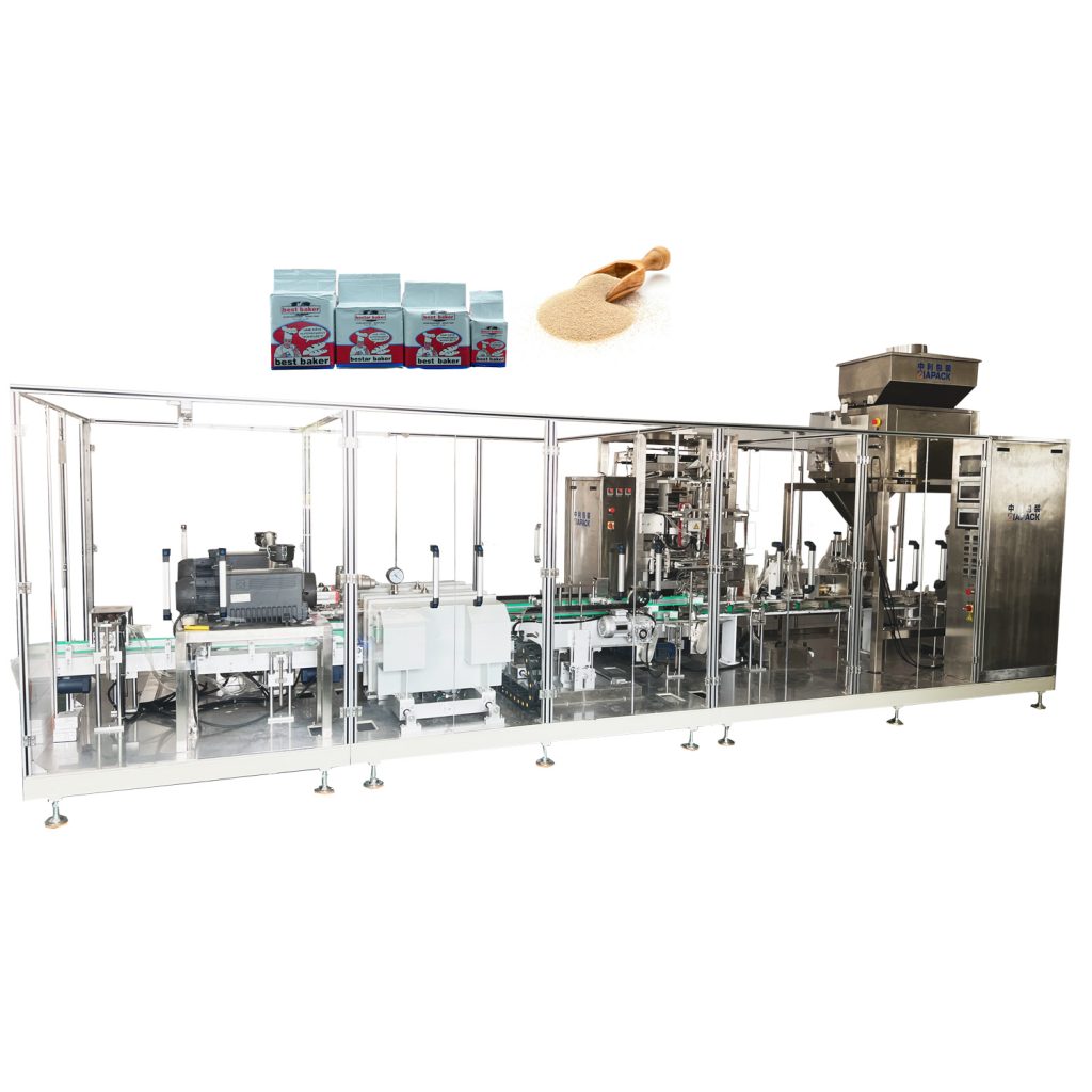 Questa macchina include un elevatore a vuoto ZK3 per l'alimentazione del lievito secco, una macchina per l'imballaggio e la sigillatura di sacchetti verticali ZL520. Questa macchina è ampiamente utilizzata per il confezionamento di prodotti chimici per farmacie alimentari e altri prodotti in polvere o piccoli granuli. Come la polvere di caffè, la farina di frumento in polvere di lievito e così via. L'intera macchina adotta il pompaggio interno per aspirare il prodotto. Il grado di vuoto è molto elevato e la velocità di confezionamento è molto elevata, può raggiungere i 30 sacchetti/min. Il prodotto finito ha una lunga durata e una bella forma.