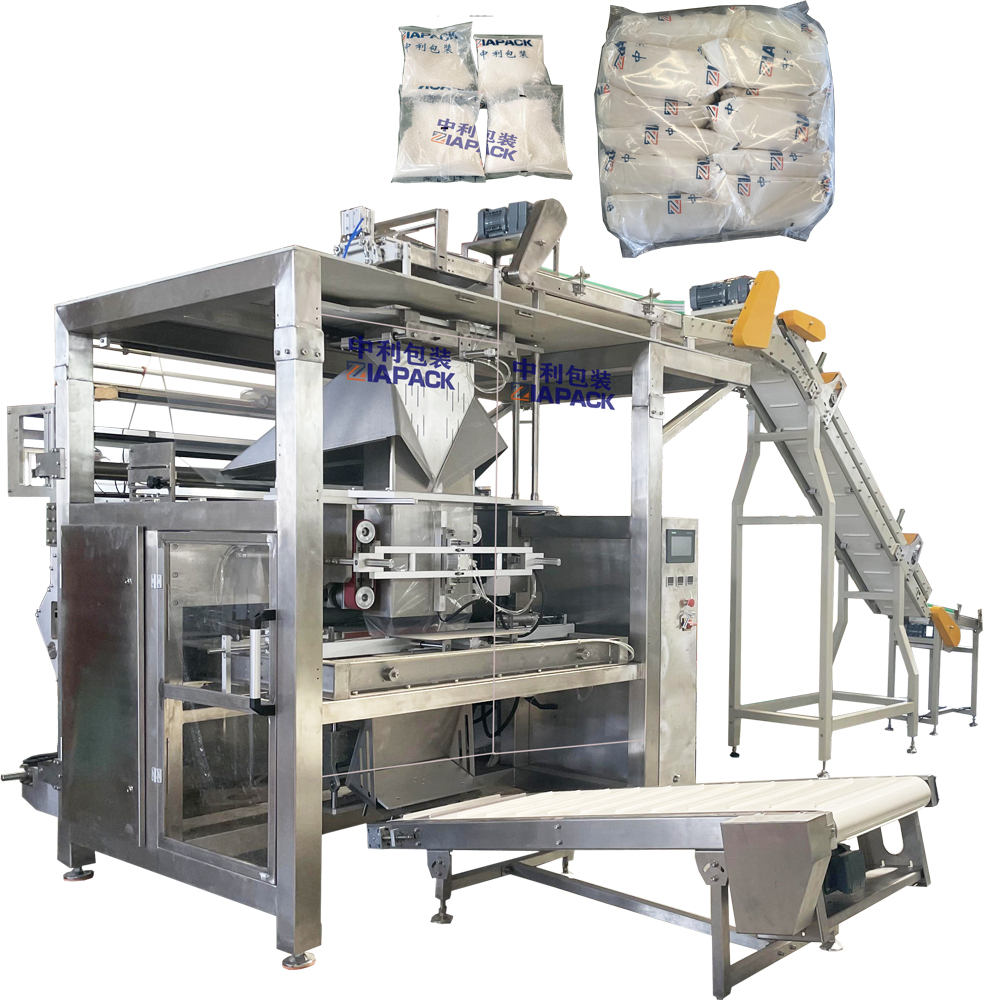 - Per l'imballaggio secondario (imballaggio automatico delle piccole bustine in un grande sacchetto di plastica):